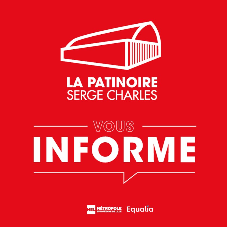 En raison d'une compétition de patinage artistique CH'TI TROPHEE : la séance publique de 10h à 12h30 est annulée; la séance publique de 15h à 18h est maintenue. Merci.